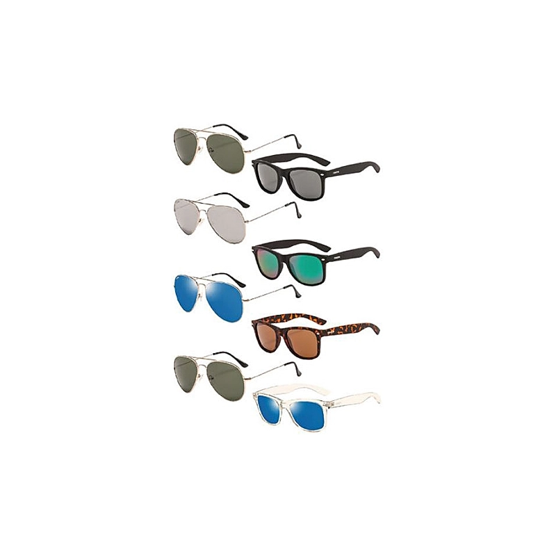 Kit composto da 8 occhiali da sole differenti (2 montature - 4 fantasie di colore differenti). Lenti con protezione massima dai raggi UV.