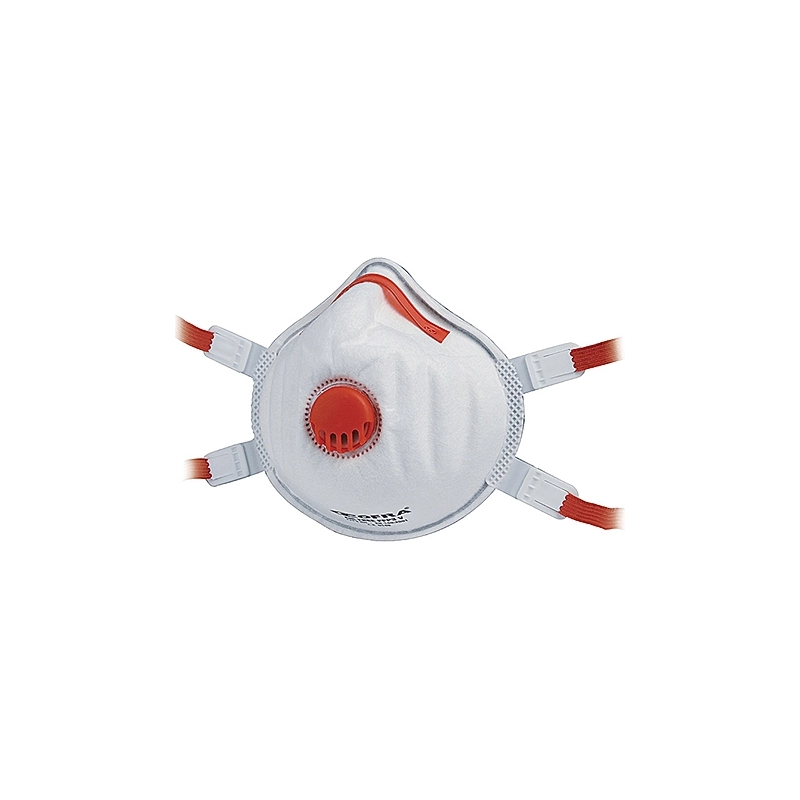 Mascherina leggera e confortevole. Non ci sono parti metalliche esposte. Elastici regolabili in 4 punti. Forma a conchiglia. EN 149:2001+A1 2009. Con valvola.