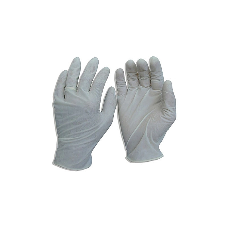Guanti monouso bianchi in TPE (materiale simile alla gomma), elastici ed aderenti alla mano. Confezione da 200 pz. Modello = taglia