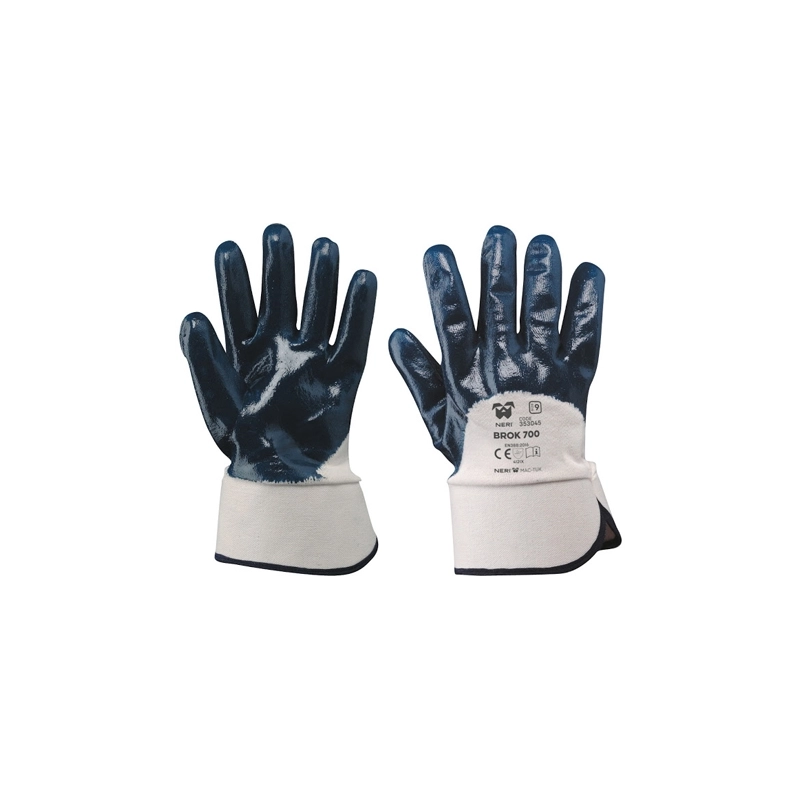 Guanti in NBR, manicotto in tela, dorso aerato. Felpatura interna. Taglia 10. EN 388:2016-4121X.