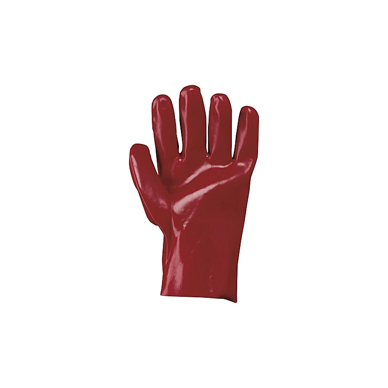 Guanto ergonomico con supporto interno in cotone ed esterno in PVC. Indicato per lavori a contatto con acidi, basi, oli da taglio, petroli e derivati. Lunghezza 35 cm. Colore rosso. EN388:2016 3121X. Taglia 10.