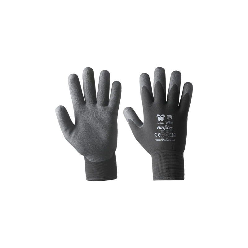 Guanti con supporto a due strati (acrilico-nylon), felpati internamente. Palmo ricoperto con una speciale mescola in schiuma composita con trattamento HPT. Trattamento antibatterico Sanitized. Polso elasticizzato e dorso aerato. Resistente fino a una temperatura di -50 gradi. Colore grigio e nero. EN 388:2016-3231X. EN 511:2006-X2X. Modello = taglia