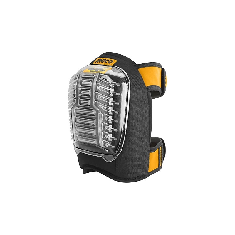 Ginocchiera imbottita con cuscinetti in schiuma. Robusta protezione in PVC rigido trasparente. Con 2 cinghie elastiche e fibbie flessibili. Dimensioni 215x180 mm