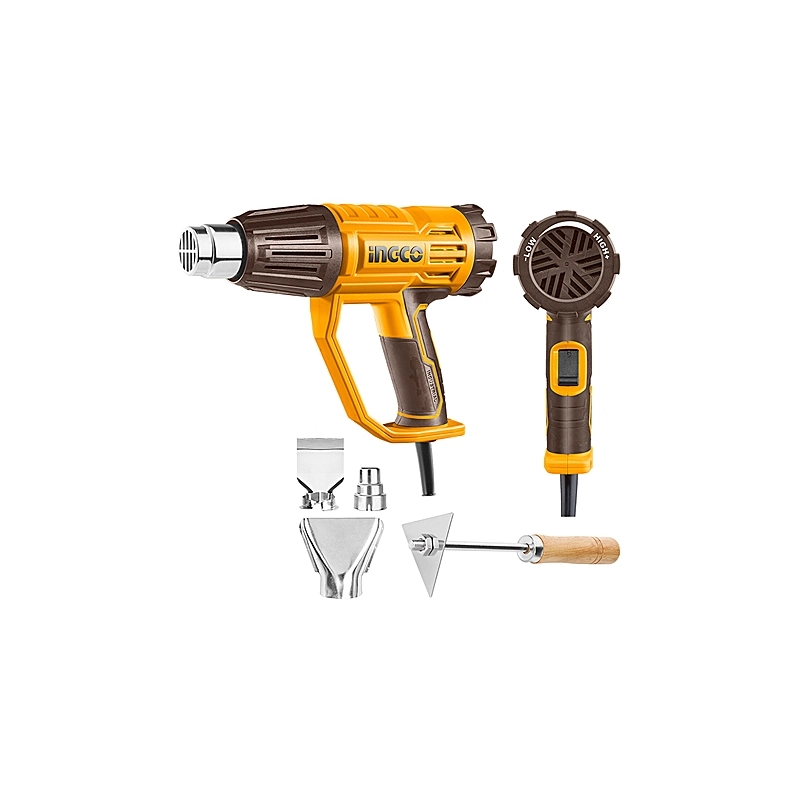 Potenza watt 2000. 3 livelli di portata e temperatura dell'aria (450 l/min - 50 gradi) - (300 l/min - 50-450 gradi) - (450 l/min - 50-550 gradi).