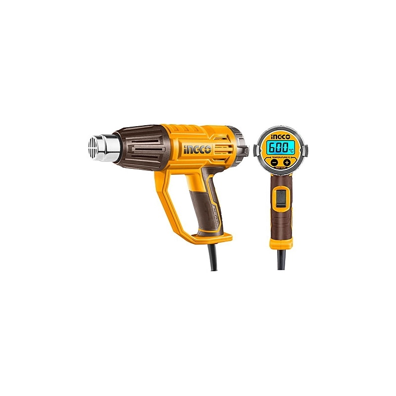 Potenza watt 2000. 3 livelli di portata e temperatura dell'aria (500 l/min - 50 gradi) - (300 l/min - 380 gradi) - (500 l/min - 570 gradi). Con 1 raschietto e 3 ugelli. Con display LCD.
