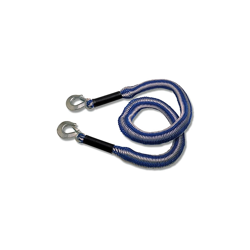 Fune di traino elastica con doppio gancio in acciaio. Portata max 800 kg.