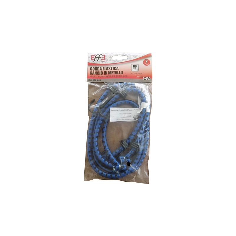 Corde elastiche con ganci in ferro, diametro 8 mm. Blister 2 pezzi. Modello = lunghezza cm