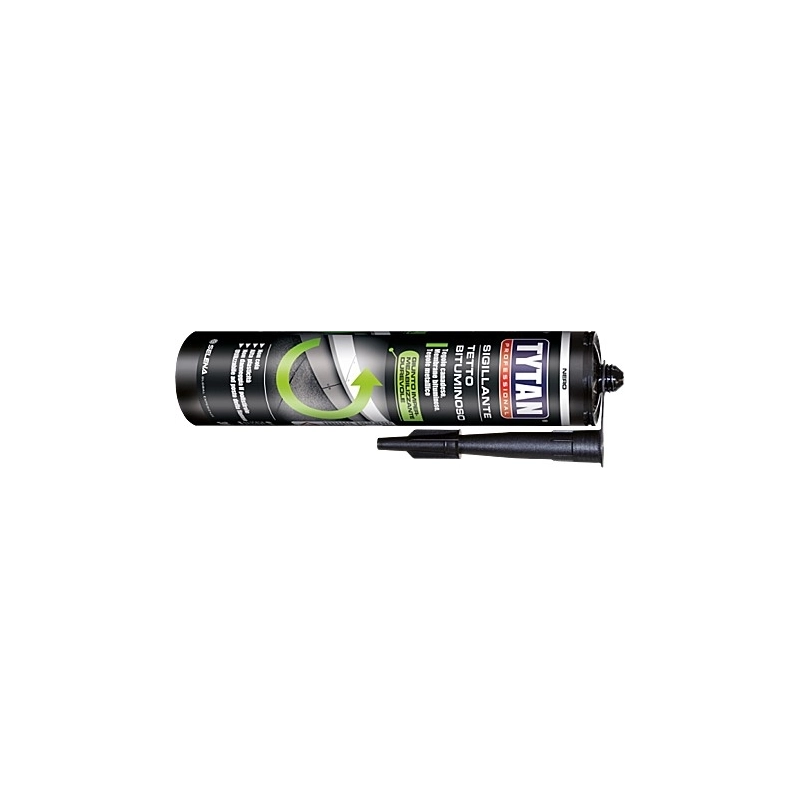 Sigillante a base di gomma e bitume. Ha un'eccellente adesione sui materiali di copertura quali: guaine, bitume, tegole, alluminio, acciaio, legno, pietra, mattoni, calcestruzzo e lamiere. Resiste al sole ed alle intemperie. Contenuto 300 ml. Colore nero.