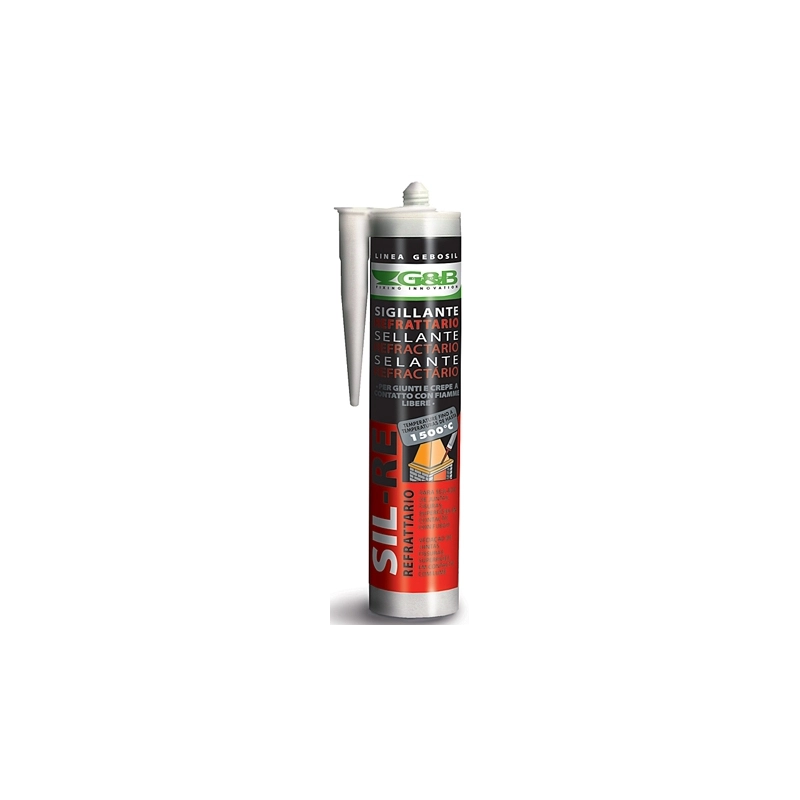 Mastice refrattario resistente alla fiamma ed alle elevate temperature (1500 gradi C). Colore grigio. Contenuto ml 310