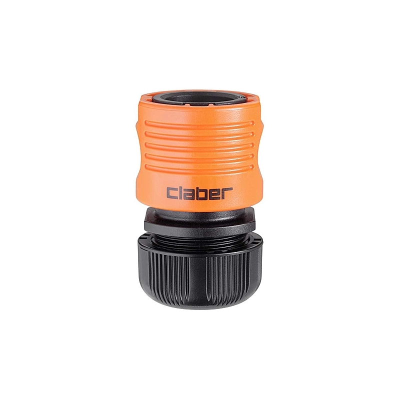 Raccordo quick-click per un collegamento rapido. Molla interna brevettata da Claber estremamente resistente e durevole. Modello = confezione