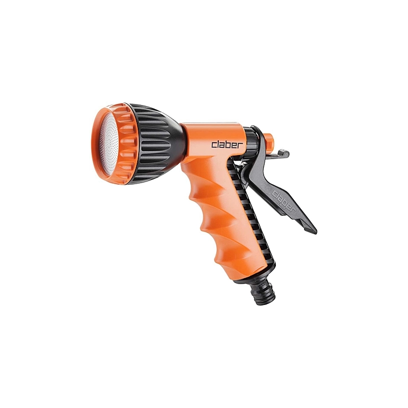 Pistola a doccia con impugnatura ergonomica e leva di regolazione del getto. Piastra forata in acciaio inox. Ideale per annaffiare aiuole e piante in vaso. In blister.
