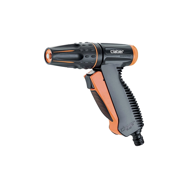 Pistola con getto e portata regolabili. 2 getti. Rivestimento morbido, garantisce una presa perfetta anche con le mani bagnate. Protezione antiurto. In blister.