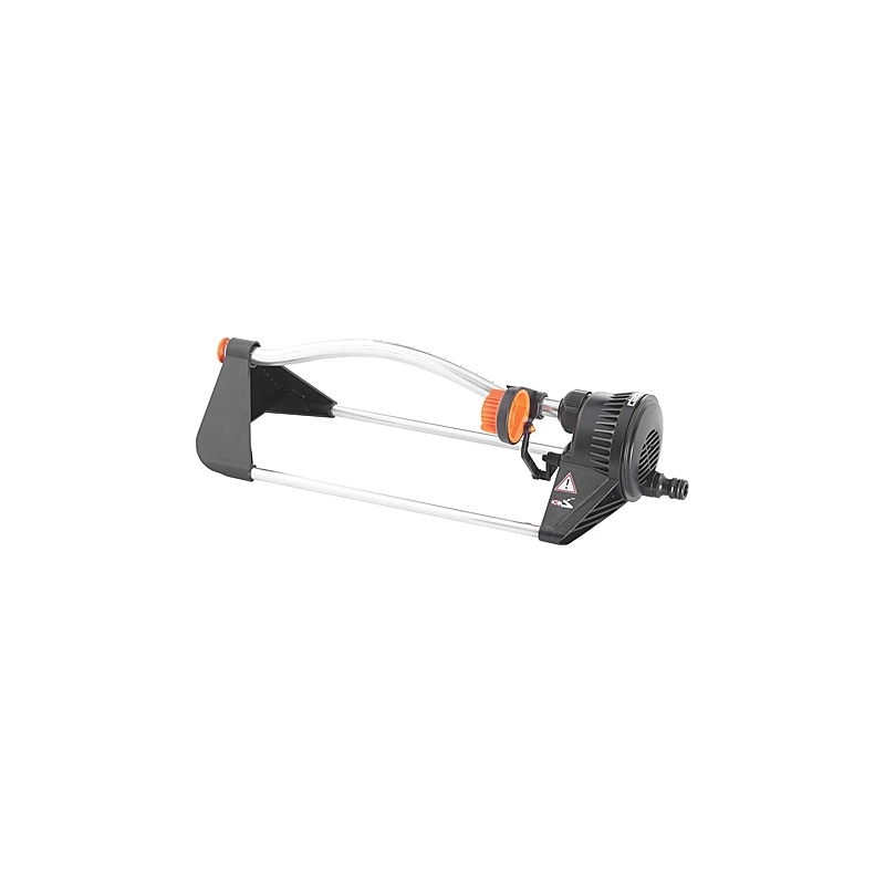 Irrigatore oscillante compatto per piccoli giardini. Braccio oscillante in alluminio con 14 fori di precisione che garantiscono getti d'acqua uniforme. Dispositivo di selezione delle aree da bagnare con posizionamento a scatto su 4 zone principali. Funzionamento anche a basse pressioni. Ingranaggi autolubrificanti. Copertura max 180 m2.