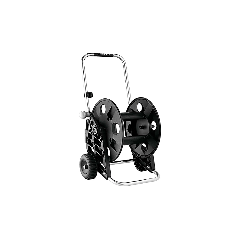 Avvolgitubo con telaio in alluminio. Tamburo montato su cuscinetti in delrin per un avvolgimento senza attriti. Pomello prensile per una presa comoda ed un agevole avvolgimento del tubo e forcella portagomma. Con raccordo incluso. Capacita' 60 mt di tubo da 1/2'' oppure 50 mt di tubo da 5/8''.