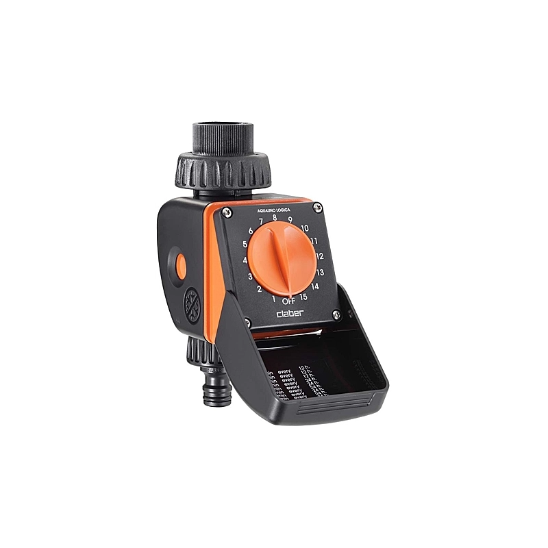 Programmatore automatico a una via con 15 programmi prefissati. Manopola rotativa per l'impostazione dei programmi desiderati. Dotato di filtro lavabile. Attacco rubinetto 3/4''. Funziona con batteria alcalina da 9V. Pressione d'esercizio da 0,5 a 10 bar.