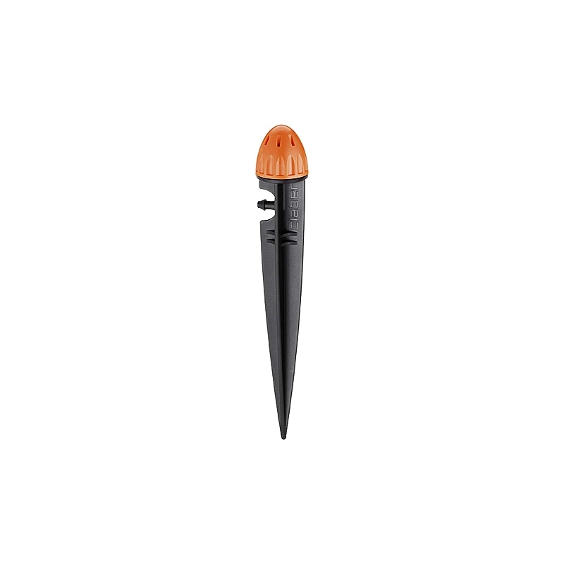 Gocciolatore aspersore montato su picchetto. Portata regolabile da 0-40 lt/h. Assicura un'irrigazione precisa e localizzata ai piedi delle piante. Si monta all'estremita' del tubo capillare da 1/4'' (4-6 mm). Blister da 10 pz.