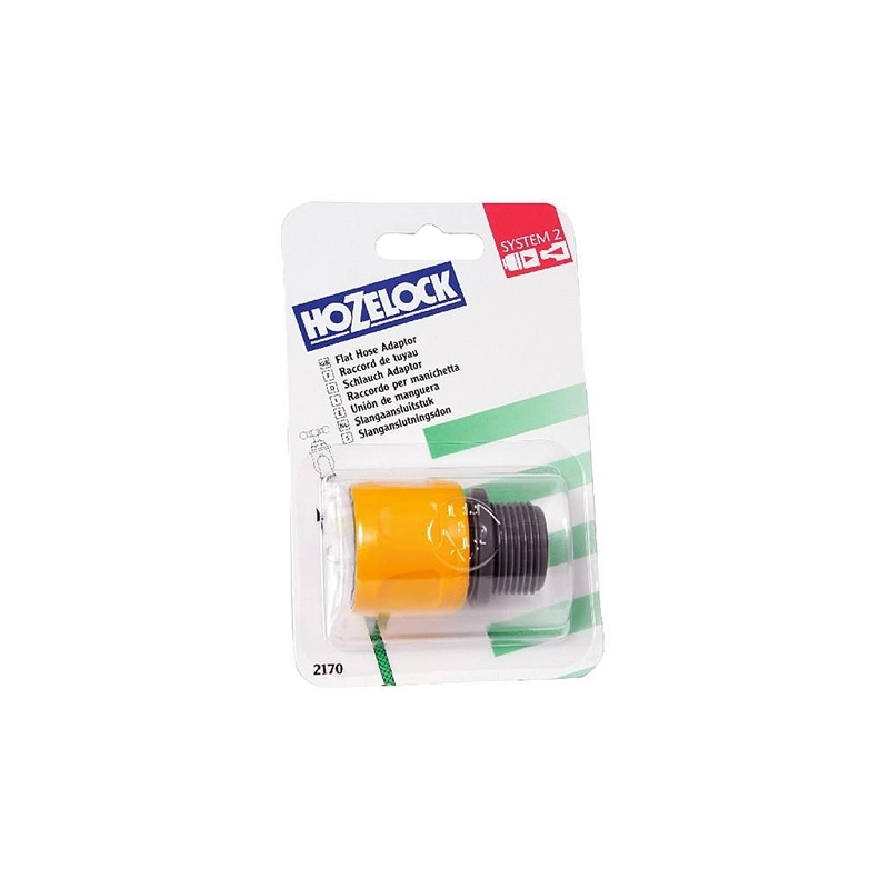 Raccordo-adattatore per tubo a spirale, tubo piatto e manichette. Attacco 3/4'' maschio. In blister.