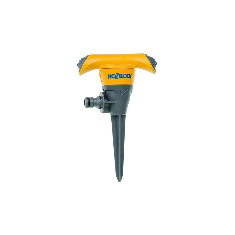Irrigatore dalle elevate prestazioni, su puntale, con doppio braccio. Utilizza 8 getti per l'irrigazione effeciente di prati, aiuole e piante. Massima area di copertura 177 m2 (diametro massimo 15 m). In blister.
