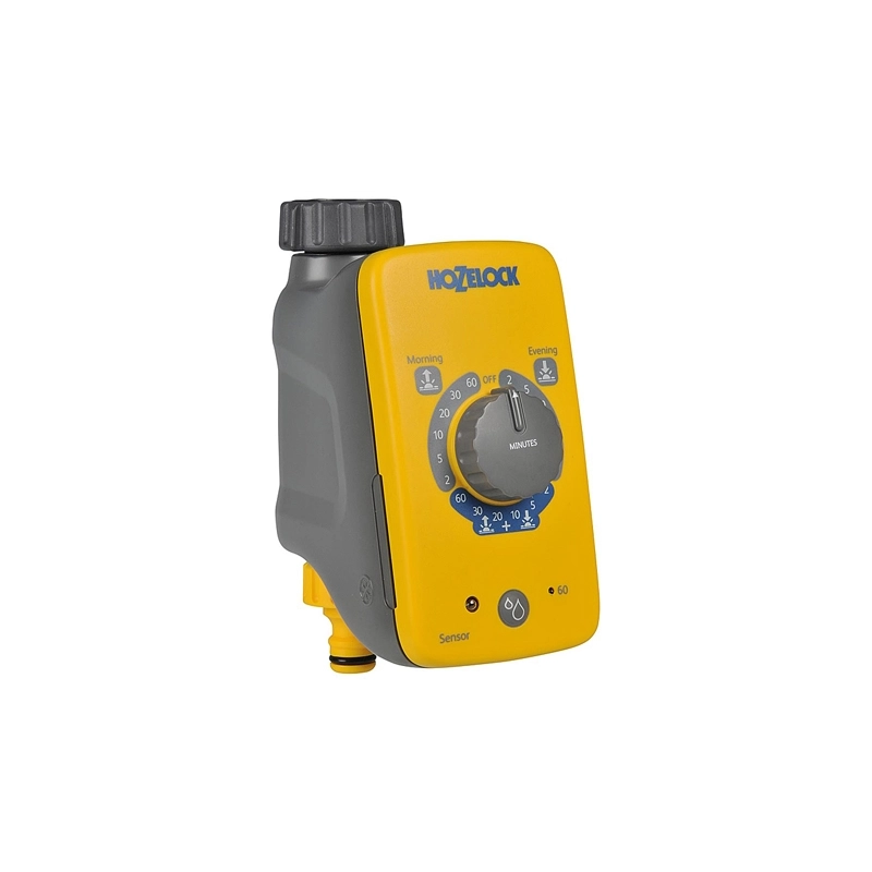 Temporizzatore elettronico per l'acqua dotato di un sensore per la luce del giorno che regola automaticamente la programmazione giornaliera per farla iniziare all'alba e al tramonto. L'irrigazione avviene 1 o 2 volte al giorno per una durata regolabile da 2,5,10,20,30 o 60 minuti. Richiede 2 batterie di tipo AA e con funzionalita' di controllo carica