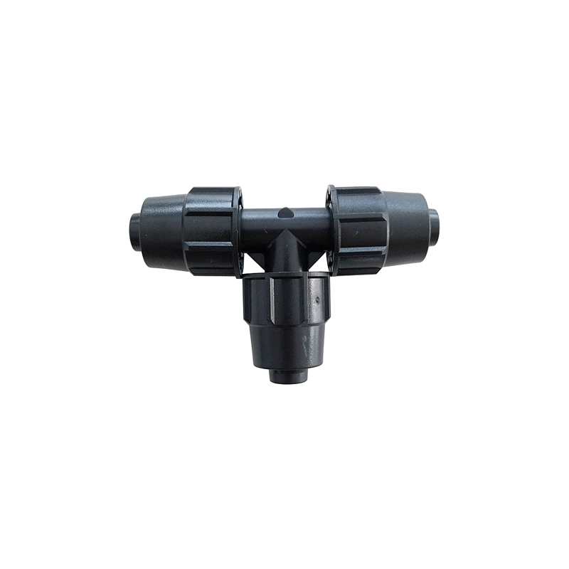 Raccordo a T con ghiere di serraggio, per ala gocciolante. Modello = per tubi in PE diametro mm
