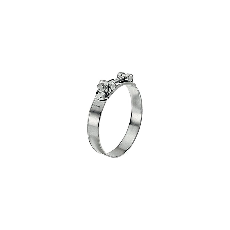 Sono indicate per serraggi che richiedono una tenuta perfetta alle medie e alte pressioni. Anello in acciaio inox (AISI 430) con bordi rialzati. Bullone e cilindretti in acciaio zincato. Modello = diametro mm (min-max)/larghezza nastro mm./filetto vite