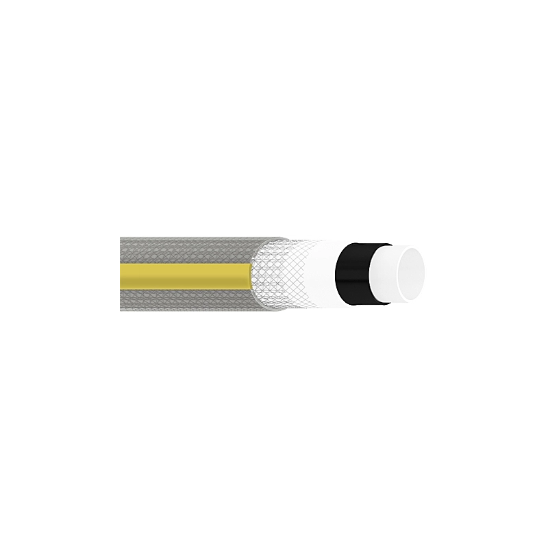 Tubo da giardino a 6 strati con doppio rinforzo tessile retinato/magliato antitorsione. Prodotto con materiali di prima qualita'. Resistente a schiacciamenti, attorcigliamenti e sbalzi di temperature. Adatto per uso alimentare. Modello = diametro mm x lunghezza m
