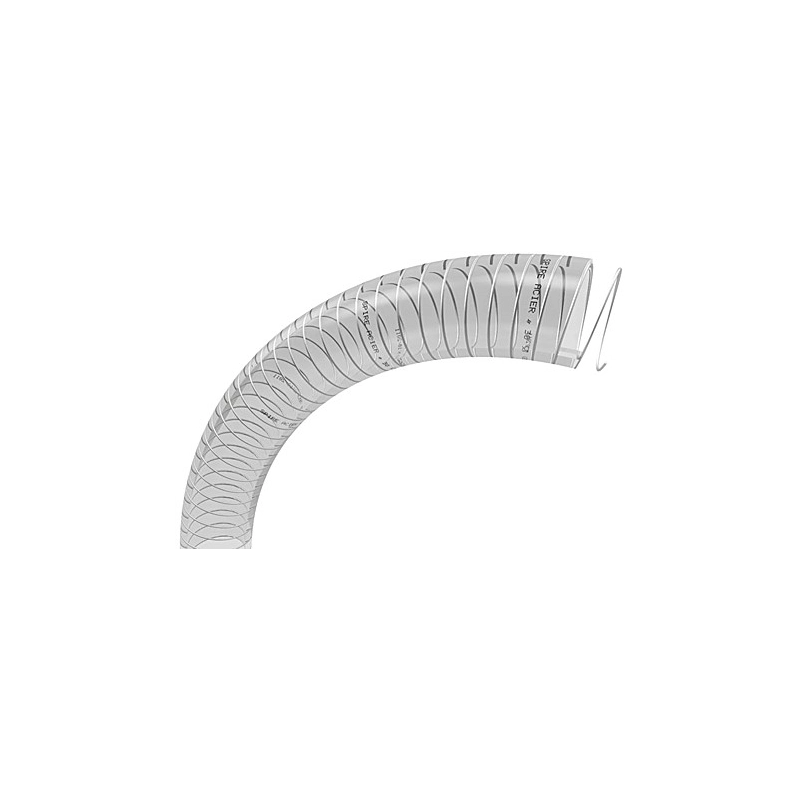 Tubo multistrato in PVC flessibile trasparente, rinforzato da una spirale in acciaio galvanizzato. Superfici interne ed esterne lisce. Adatto per uso alimentare (succhi di frutta, vino, alcool forti, latte, ecc..). Rotoli da 30 mt. Modello = diametro mm/scoppio bar