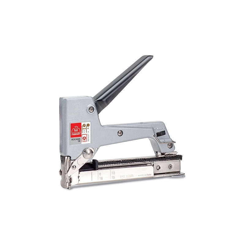 Utilizza punti e chiodini brads posizionati centralmente. Frontale apribile, regolatore di potenza. Per punti 108 - 110 - 112 - 114 - 116. Per chiodini da mm 13 - 15 (serie M 13 - M 15)