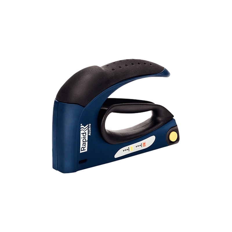 Fissatrice in alluminio per graffe a filo fine no.53 da 4-10 mm e graffa n.13 da 4-10 mm. Sistema a leva inversa che permette di sparare in tutte le direzioni ed anche senza supporto fisso. Forza regolabile. Funzione di bloccaggio e meccanismi interni in acciaio.