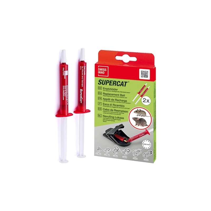 Esca universale per trappole per topi e ratti in siringa. Contenuto 2 siringhe con 3 grammi di esca. In blister.