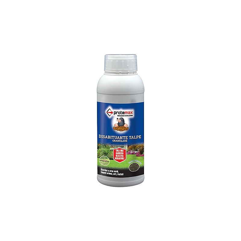 Repellente granulare per talpe, nutrie ed arvicole. Crea una barriera olfattiva sgradevole. Indicato per giardini, tappeti erbosi, orti e frutteti. Contenuto 1 lt.