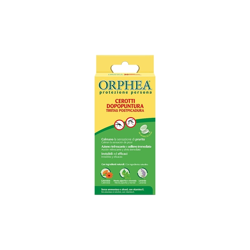 Cerotti dopopuntura con estratti naturali di Calendula, Menta piperita e Lavanda. Calmano la sensazione di prurito dovuta alle punture di insetti, rinfrescano e leniscono la pelle. Il cerotto crea una barriera meccanica che protegge la pelle dallo sfregamento e impedisce ulteriori irritazioni della cute lesa, donando sollievo immediato. Ideali per adulti. Efficaci per 8 ore. In confezione da 30 pz