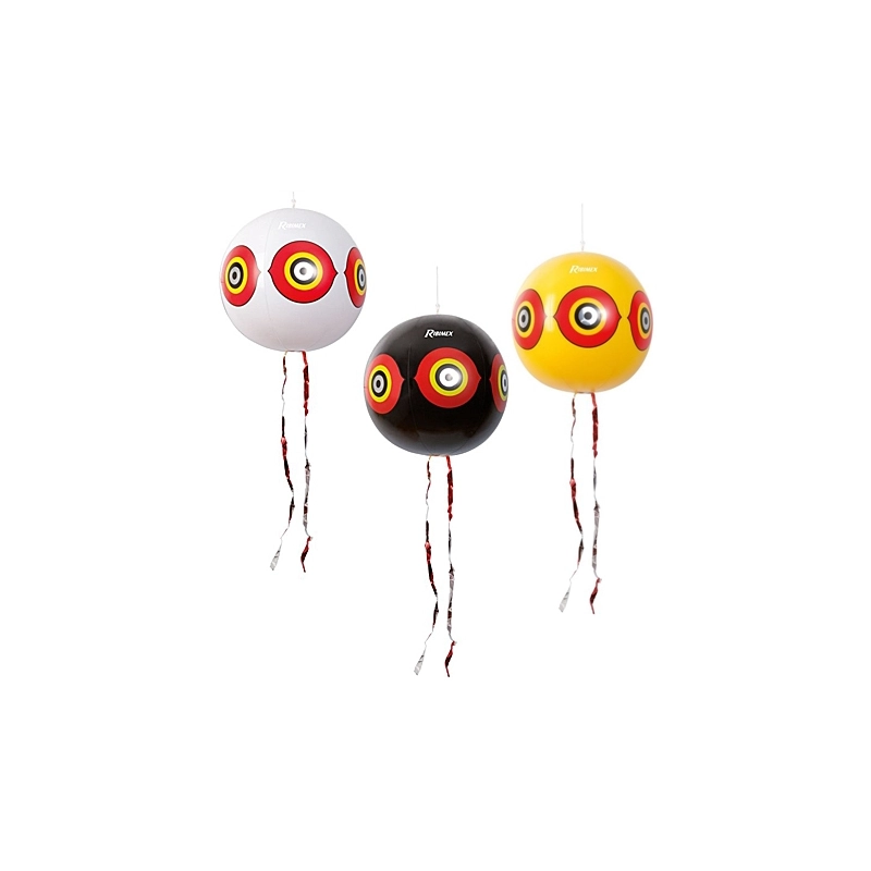 Palloni per esterno in vinile, efficaci per proteggere parchi, giardini e colture dalla dannosa presenza di volatili. Diametro 50/40 cm. In confezione da 3 pezzi. Inclusi inoltre 3 cavi, 18 adesivi argentati e 6 bande argentate.