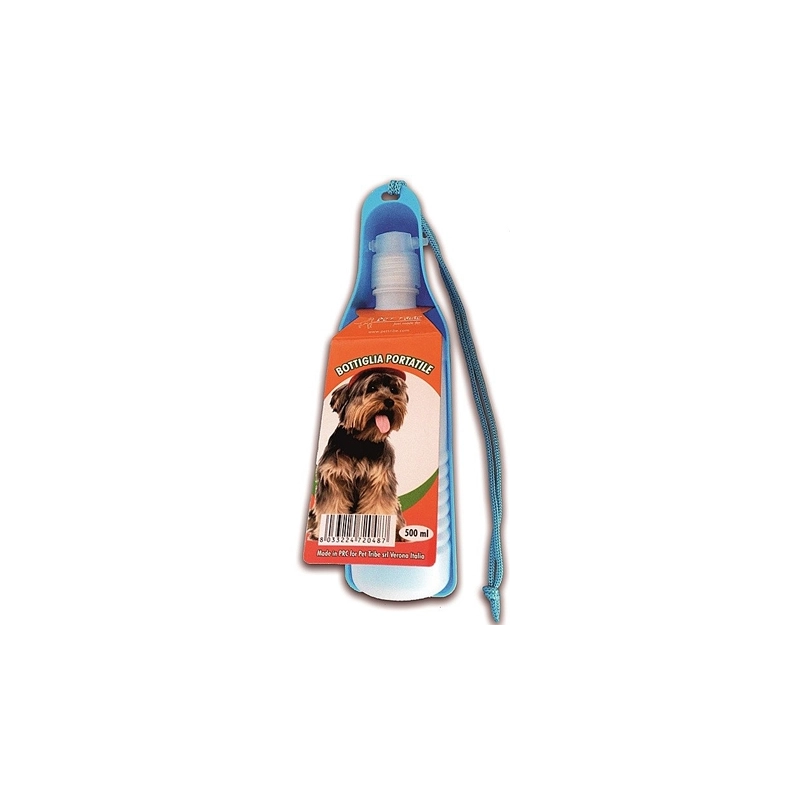 Bottiglia completa di ciotola incernierata. Chiusura a vite. Contenuto 500 ml.