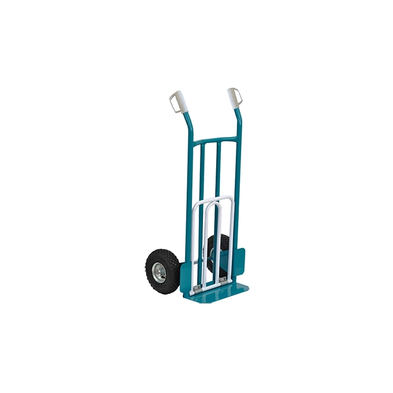 Carrello per scatoloni con pala ribaltabile. Ruote pneumatiche diametro 260x85 mm con cuscinetto a rulli. Tubolari in acciaio da mm 30x1,5 spessore. Portata 250 kg. Peso kg 15.