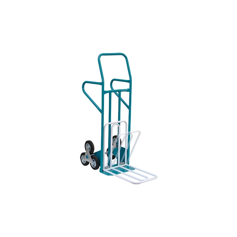 Carrello rinforzato a 6 ruote da mm 160 con pala ribaltabile. Portata kg 200. Movimento a stella con cuscinetti a rulli Dimensioni pianale mm 390x260/530