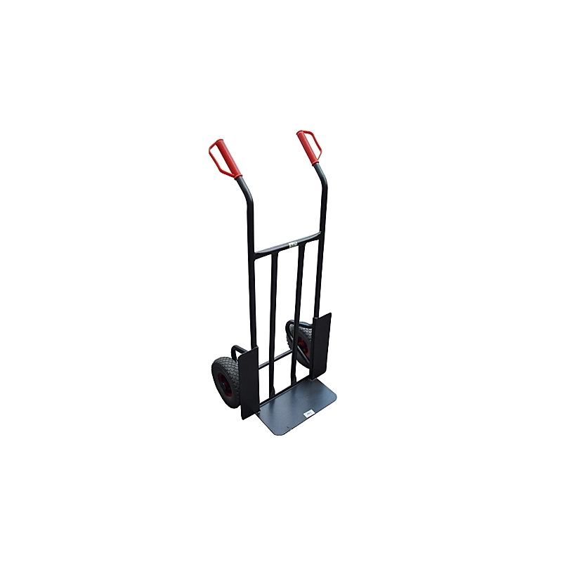 Carrello con spalle copri ruote. Ruote da mm 260. Dimensioni HxL mm 1240x550. Pianale LxP mm 400x200. Colore grigio martellato. Ruote pneumatiche