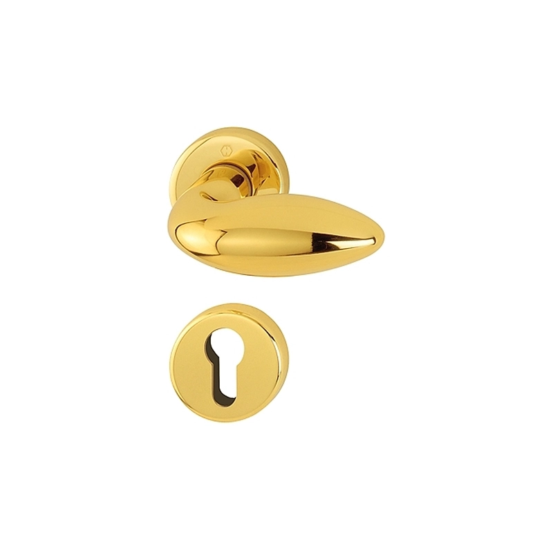 In ottone massiccio con rosetta diametro mm 52, completi di bocchetta foro Yale. Con molla di richiamo ambidestra. Dimensioni mm 100. Finitura ottone lucido F71.