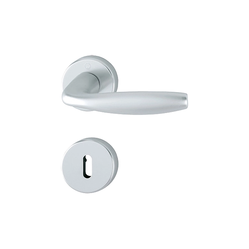 In alluminio per porte interne. Dimensione quadro 8 mm. Categoria d'utilizzo 3 - DIN EN 1906. Finitura alluminio argento F1. Modello = tipo foro chiave