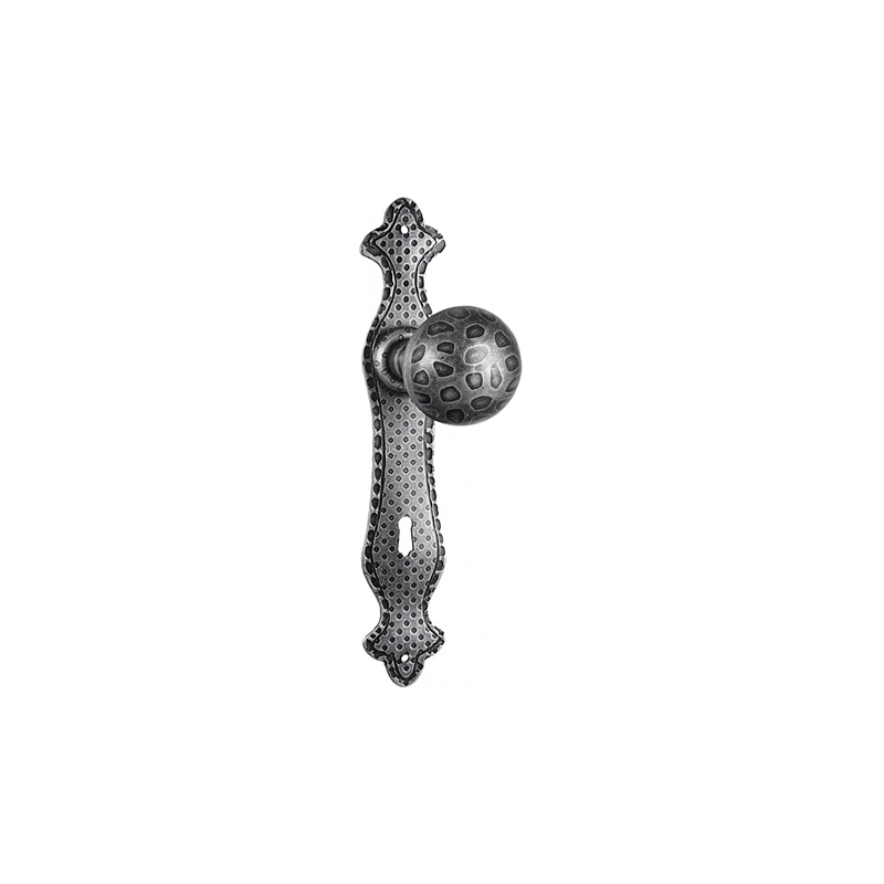 Coppia pomolo girevole con placca leggermente decentrato. Color agento. Modello = tipo foro