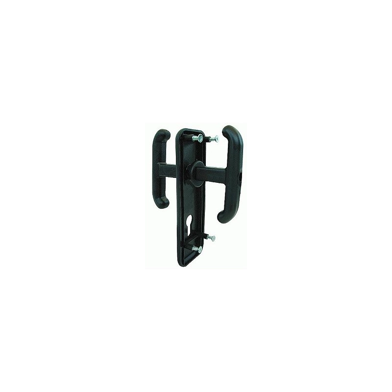 Coppia maniglie piu' placca con quadro filettato e vite di regolazione. Colore nero. Modello = tipo foro chiave/articolo