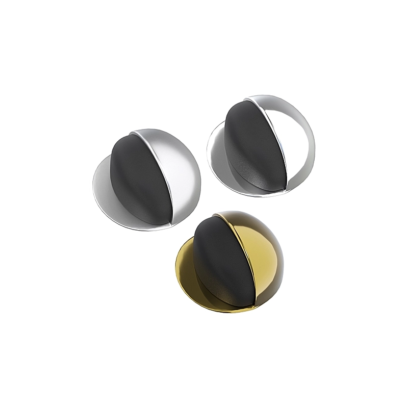 In acciaio con battente in gomma. Dimensioni mm.50x22h. Modello = finitura