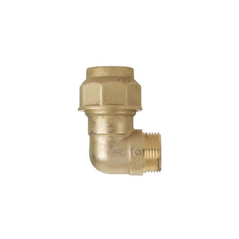 Raccordo a gomito 90 gradi, in ottone sabbiato. Attacco filettato maschio. Modello = misura mm x pollici