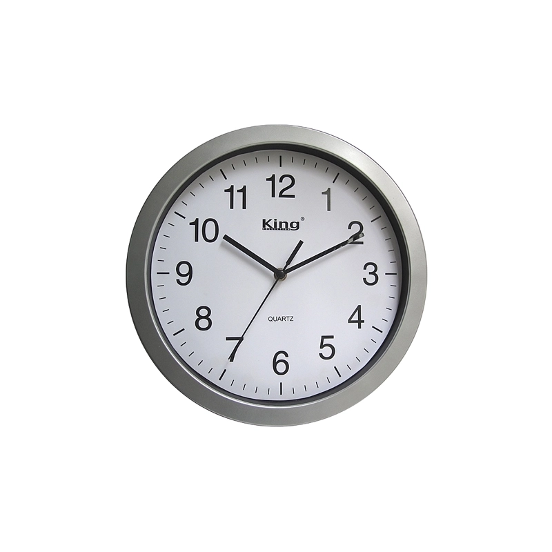 Orologio grigio da parete. Diametro cm 30. In plastica. Batteria non inclusa.