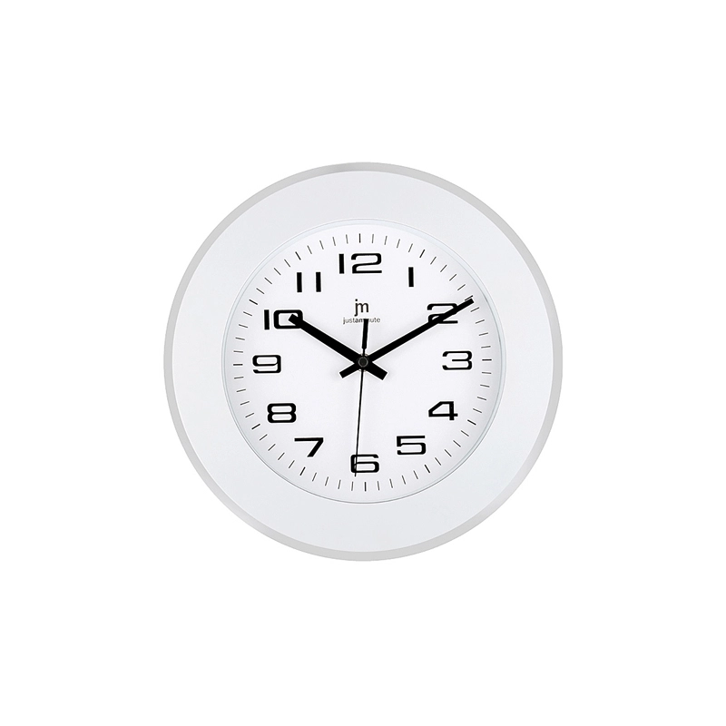 Orologio da parete in ABS. Movimento continuo silenzioso. Diametro 30 cm. Colore assortiti, fondo bianco, cornice: bianca, azzurra, blu, grigia, nera e arancio.