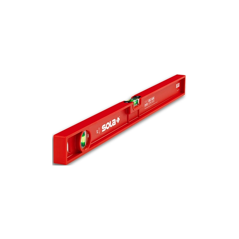 Livelli in ABS, 2 bolle. Nessuna traccia di sfregamento su piastrelle e superfici delicate. Lettura migliore e precisa con le fiale SOLA-FOCUS brevettate. Peso ridotto, forma profilata senza distorsioni. Modello = lunghezza cm