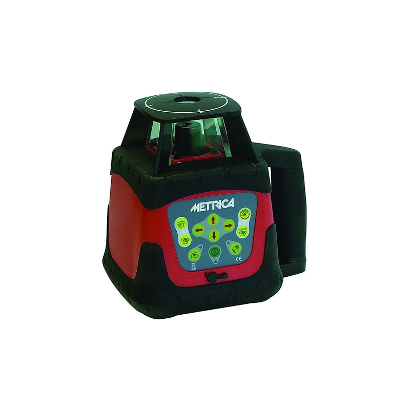 Laser rotante autolivellante con rivestimento in gomma antiurto. Portata 400 mt con ricevitore. Funzioni: piano orizzontale, piano verticale, scanner, tilt, inclinazioni manuali assi X e Y. Batterie ricaricabili NiMH. IP65. Laser 635 nm (Classe 2). Precisione +/-3 mm/30 m. Attacco 5/8". Dimensioni 160x200x200 mm. In dotazione telecomando, ricevitore, caricabatterie, occhiali e custodia.
