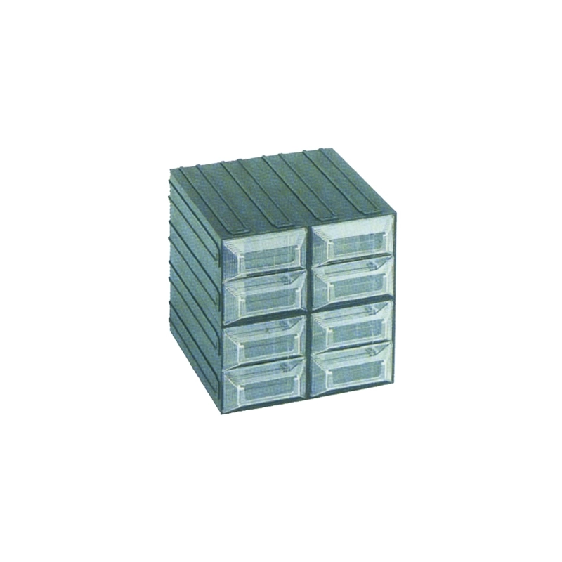 Cassettiera assemblabile ad incastro con 8 cassetti, dotati di portaetichetta frontale. Completa di 8 divisori mobili. Dimensioni (L x P x H) mm. 208 x 222 x 208
