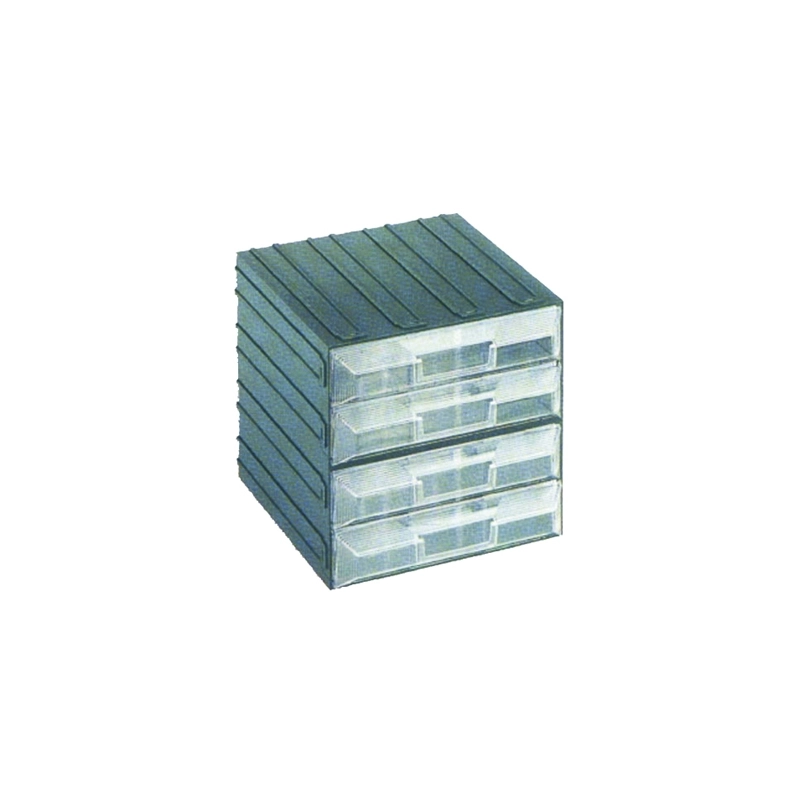 Cassettiera assemblabile ad incastro con 4 cassetti, dotati di portaetichetta frontale. Dimensioni (L x P x H) mm. 208 x 222 x 208. L'art.16 bis ha 8 divisori fissi e 18 divisori mobili. Modello = art.