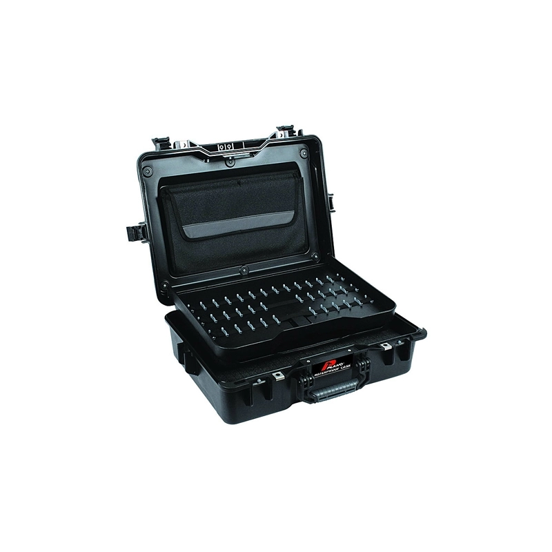 Valigia portautensili impermeabile IP67. Approvata come bagaglio a mano. Resistente all'impatto. Chiudibile con lucchetto. Chiusure resistenti alla polvere. Guarnizione ad alta tenuta. Tasca portadocumenti. 2 pannelli portautensili con elastici. Fondo con scomparti modulabili. Maniglia con impugnatura morbida, ergonomica e antiscivolo. Dimensioni 52,5x40x17 cm.